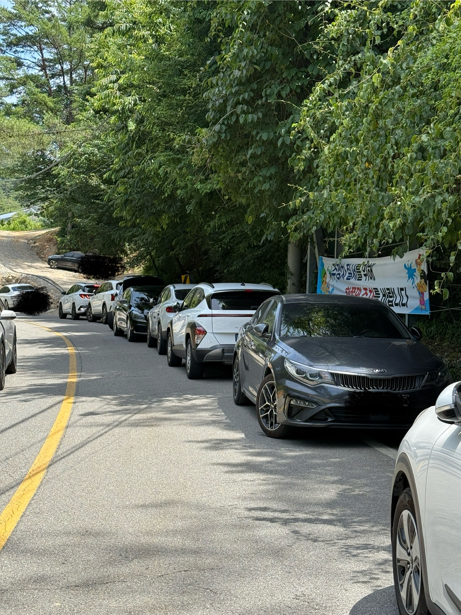 이렇게 한쪽면에 주정차하시라는 현수막이 보이면